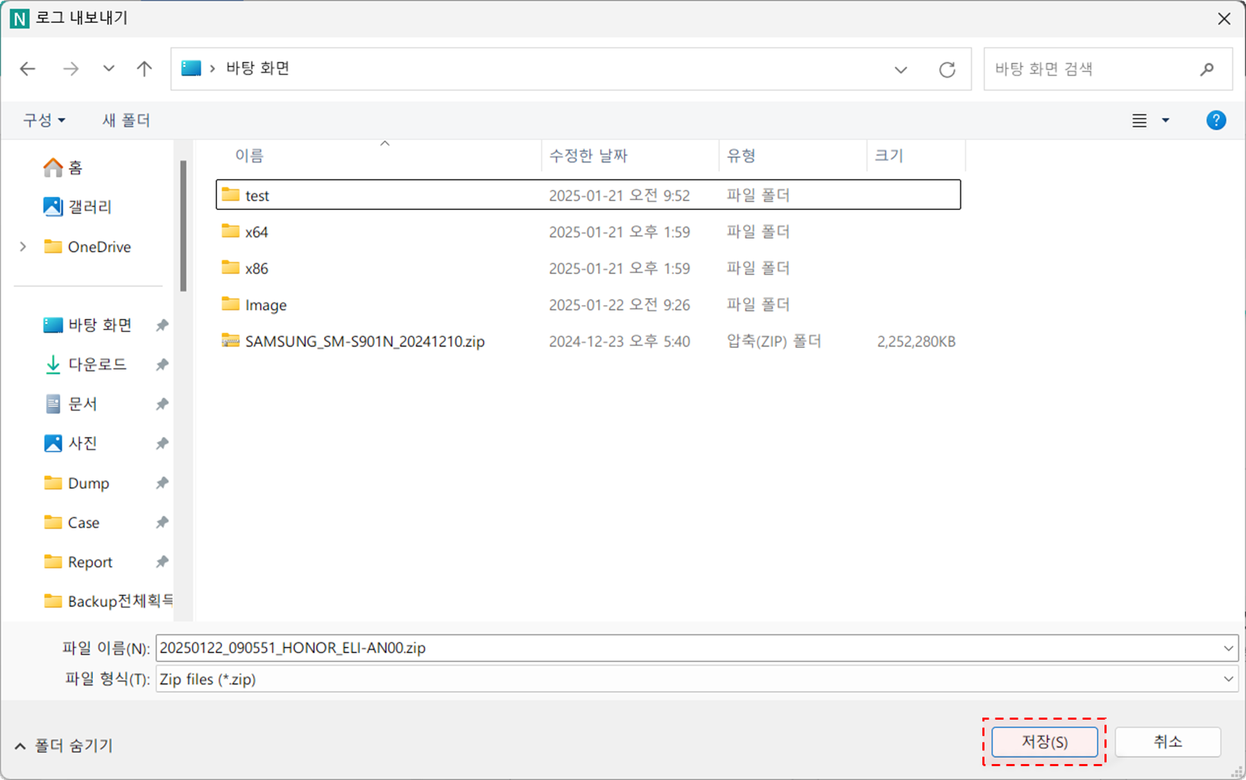 내보내고자 하는 경로를 선택하고 [저장]을 클릭하고, 로그가 내보내지는 동안 잠시 기다립니다.