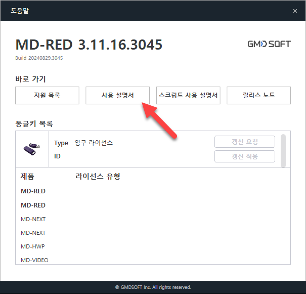 {제품 설치 경로}/Documents/UserGuide/MD-RED_User_Guide_Kor.pdf