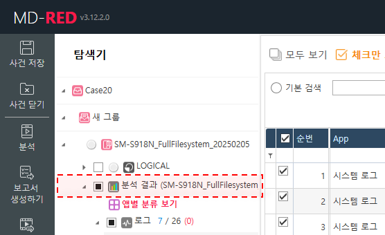 이 알림창은 Android Full Filesystem 또는 Android Physical 획득한 경우에만 확인되며, 다른 획득 방식에서는 표시되지 않습니다.