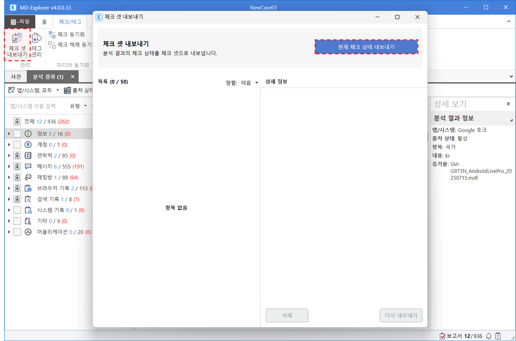 '현재 체크 상태 내보내기' 클릭