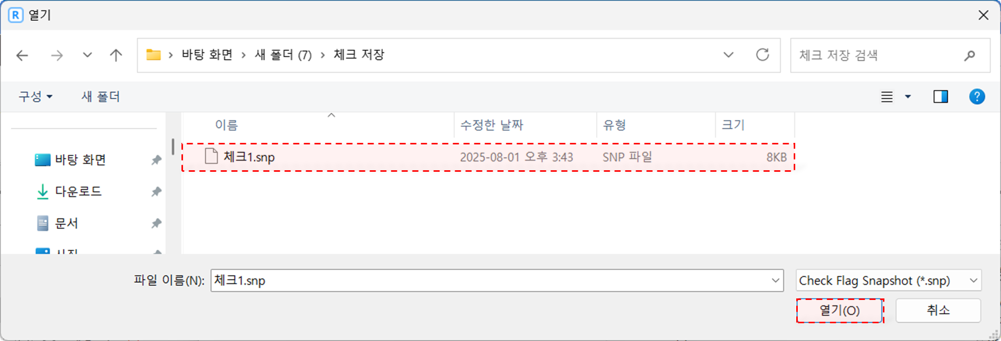 '가져오기' 클릭 후 앞서 저장한 snp 파일 지정