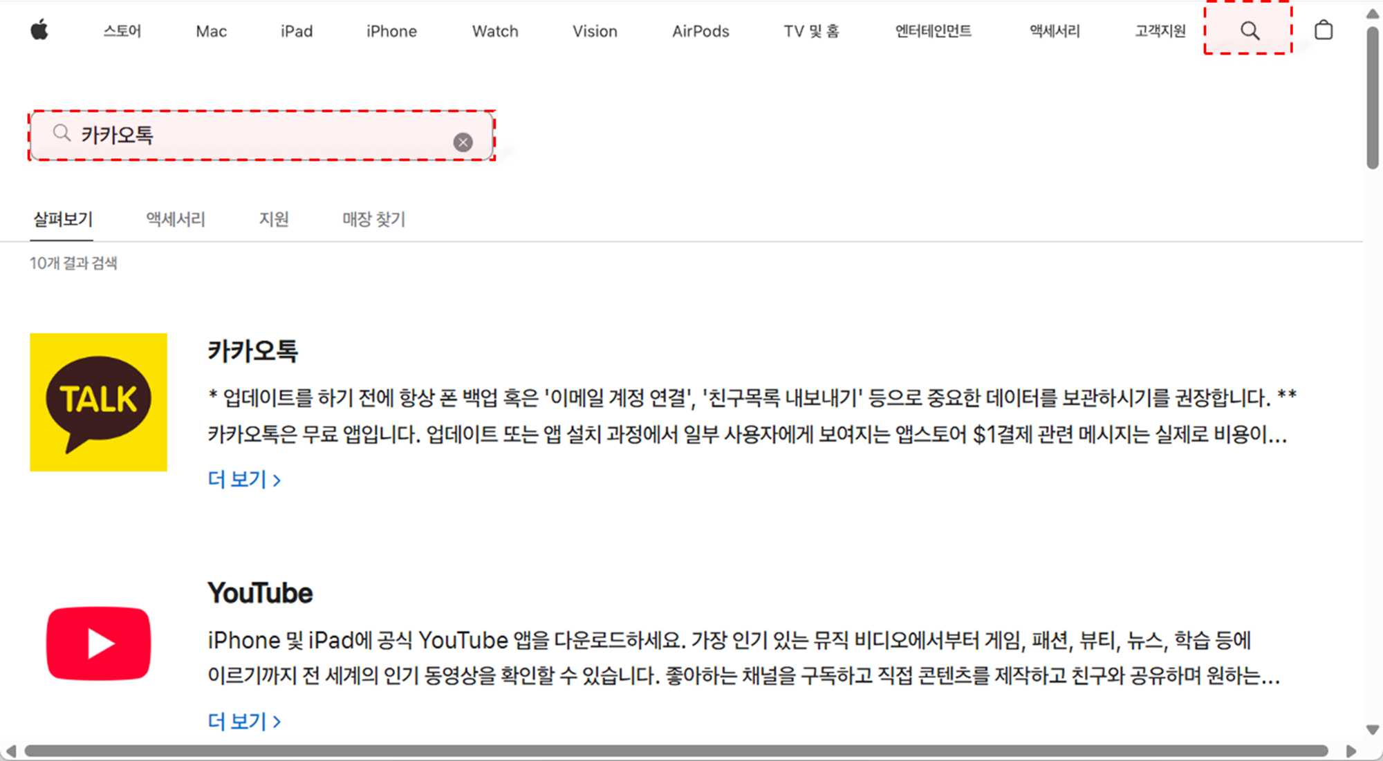 기본 앱이 아닌 일반 앱(서드파티 앱)의 경우, 원하는 앱을 App Store 웹사이트에서 검색하여 아래 방법으로 확인할 수 있습니다.