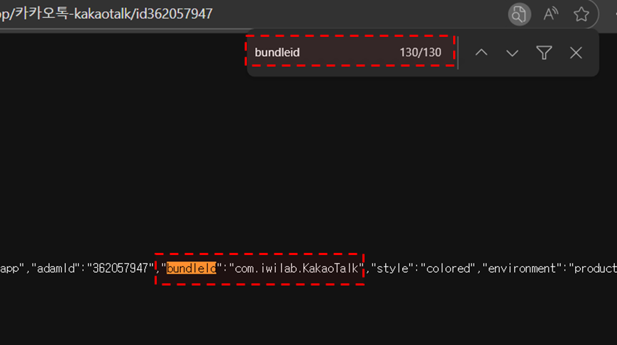 Ctrl + F를 눌러bundleId검색 후 가장 마지막 키워드 확인