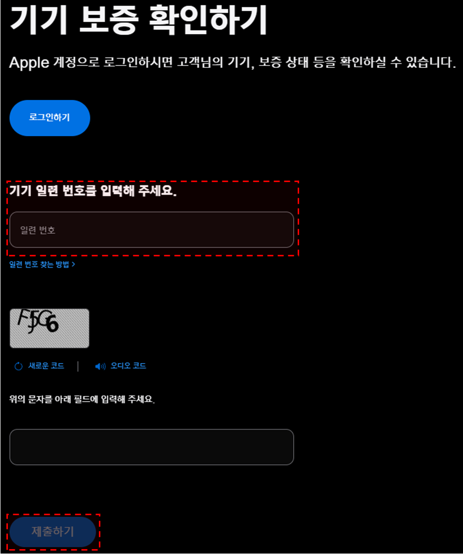 Apple 보증 확인 사이트(https://checkcoverage.apple.com/)에 접속